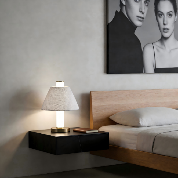 Lanpararen gorputza burdinazko arte sendoz egina dago eta kobre koloreko brotxa bidezko galvanoplastia prozesu batekin tratatuta dago, metalezko ehundura delikatua eta goi-mailakoa aurkezten duena. Zetazko oihalezko pantaila zuria leuna da eta argia uniformeki zabaltzen du, argi-giro epel eta leuna sortuz. 20W LED argi iturriak, 2000LM-ko distira altuarekin konbinatuta, eguneroko argiztapen beharrak asetzen ditu. 4000K-ko kolore-tenperatura neutroak (2700K, 3000K, 5000K, etab. pertsonalizagarriak bezeroaren eskakizunen arabera) eta Ra80 baino gehiagoko kolore-errendimendu indizeak objektuen benetako kolorearen erreprodukzioa bermatzen dute, irakurtzeko, lan egiteko edo erlaxatzeko esperientzia bisual erosoa eskainiz.