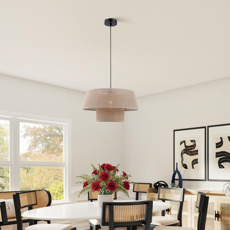 Strong Lighting Txinako fabrikatzaileak aurkeztutako azkenaldian, bi mailatako kalamu sukaldeko zintzilikarioko lanparak giro vintage eta atsegina dakar barruko dekorazioari. 1 m-ko luzerako kable beltz malgu batek lanpararen altuera libreki doitzeko eta zintzilikario gisa erabiltzeko aukera ematen du. erdiko argi-argia. Jangelako mahai baten gainean zintzilikatu dezakezu, egongelako izkina batean jarri edo logelan ere zintzilikatu dezakezu. Ez da produktu funtzional bat, zure etxeko apaingarriaren zati bat baizik. Bi mailatako kalamua sukaldeko zintzilikarioko lanparak bi tamaina ezberdin ditu, beste bat txikiagoa 300MM-ko diametroa.